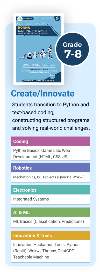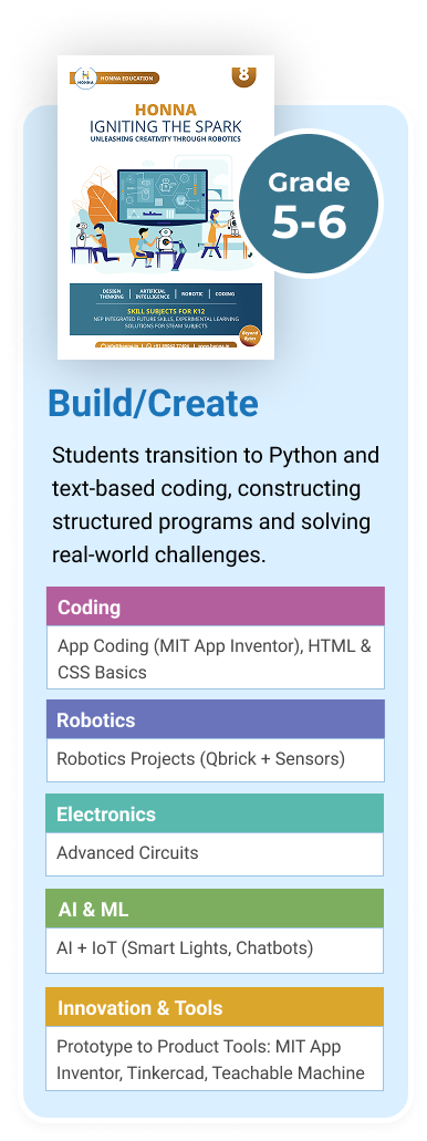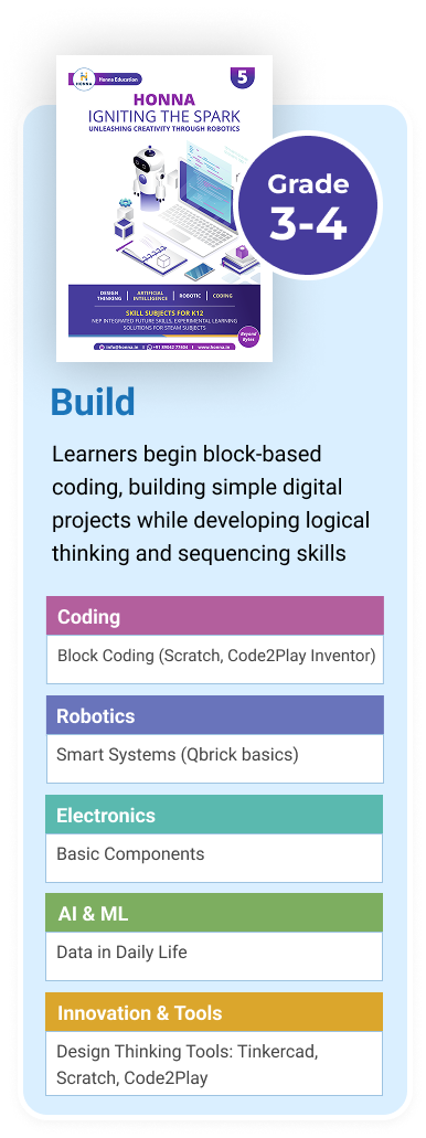 At Honna Education, our STEM program is more than just coding—it’s a guided journey of exploration, logic, and purposeful creation. Aligned with NEP 2020, each stage builds age-appropriate skills in technology, design thinking, and ethical innovation.
